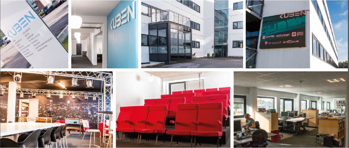 Udover et traditionelt kontormiljø består Kuben også af mødelokaler, biografsal og gode lagerfaciliteter.
